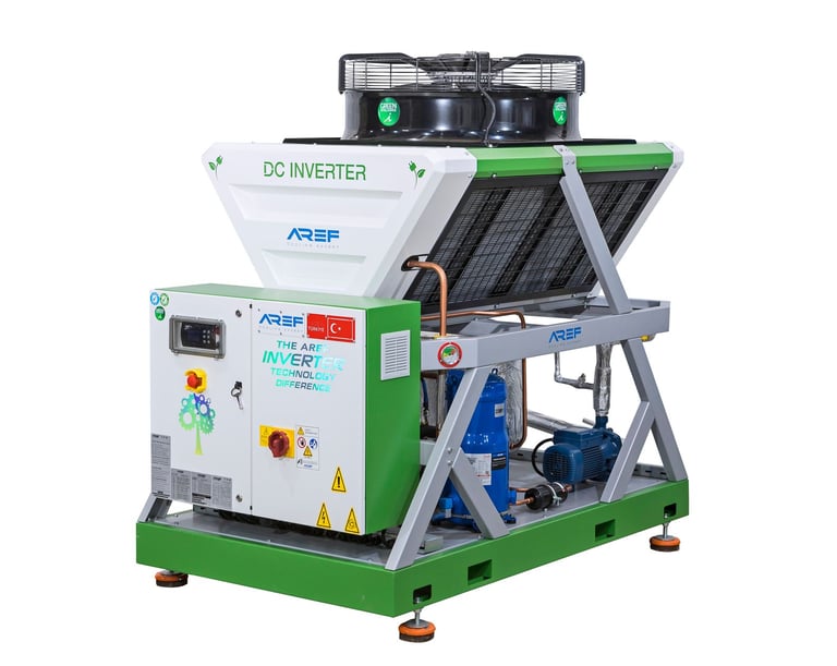 InverGreen Serisi, tek bir invertör kompresör, fan ve plakalı eşanjör, evaporatör seçeneği ile donatılmış özel bir chiller serisidir. Bu üniteler, elektrik tüketimini %15 ile %28 arasında azaltma kapasitesine sahip olup, çevreye önemli faydalar sağlar. Ayrıca, su pompaları ile donatılmış olup, su-glikol karışımlarıyla uyumludur ve proses termal yükleri önemli ölçüde dalgalansa bile hassas sıcaklık kontrolü sağlayan bir depolama tankı ile birlikte gelir. 90.38 kW’a kadar soğutma kapasitelerine sahip olan InverGreen Serisi, geniş bir müşteri ihtiyaç yelpazesine hitap edebilecek esneklik sunmaktadır