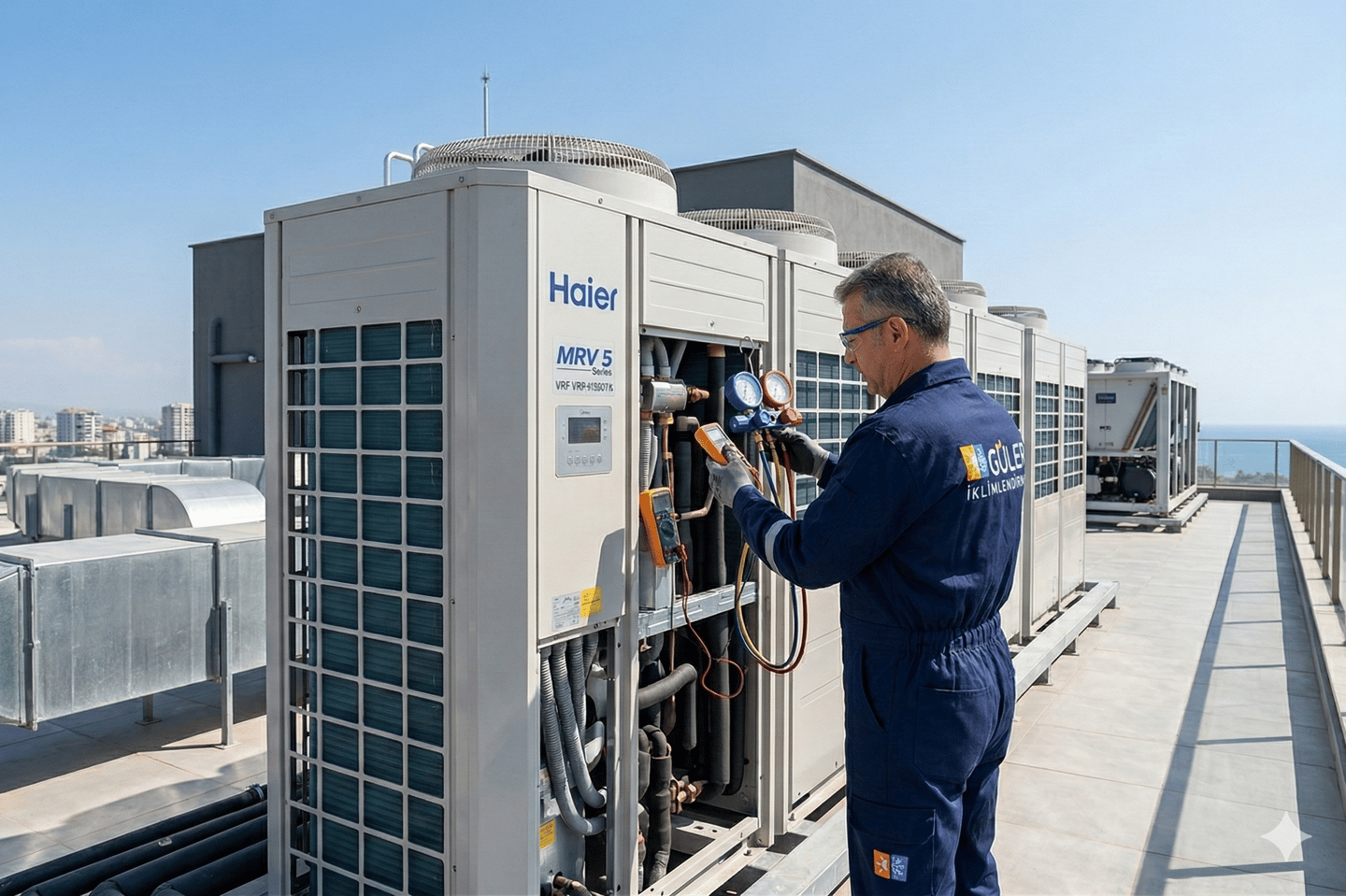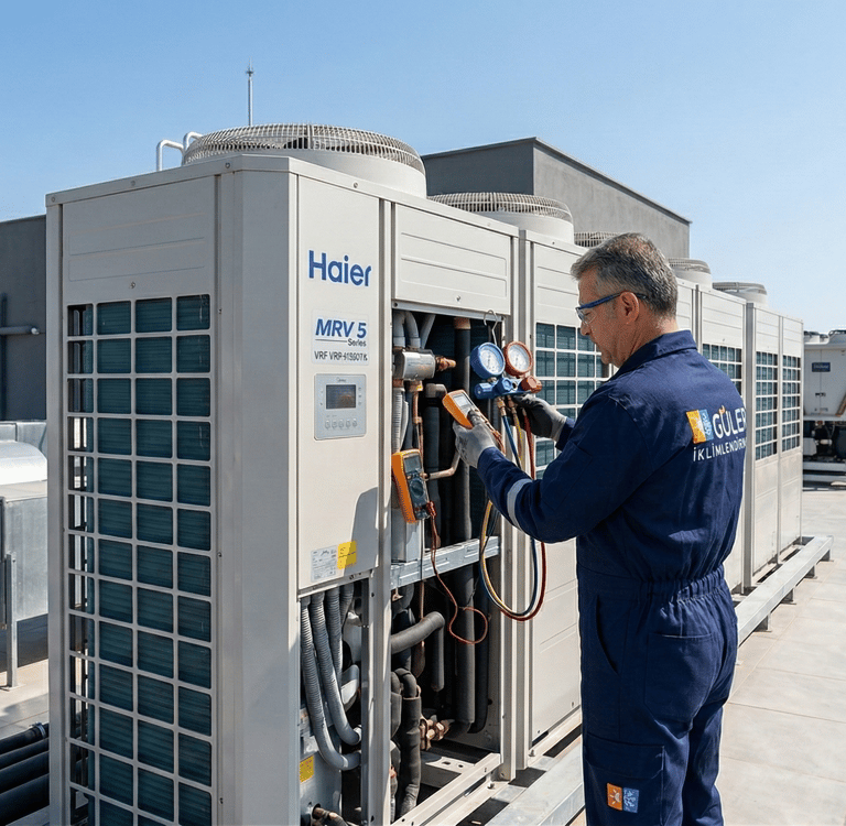 Günümüzün modern ve büyük ölçekli yapılarında enerji verimliliği ile maksimum konforu bir arada sunan VRF (Değişken Debili Soğutucu Akışkan) ve VRV sistemleri, iklimlendirme teknolojilerinde en yenilikçi çözümleri temsil etmektedir. Güler İklimlendirme olarak; otel, hastane, AVM, iş merkezleri ve endüstriyel tesislerinizin iklimlendirme ihtiyaçları için yüksek performanslı ve uzun ömürlü sistemler kuruyoruz.